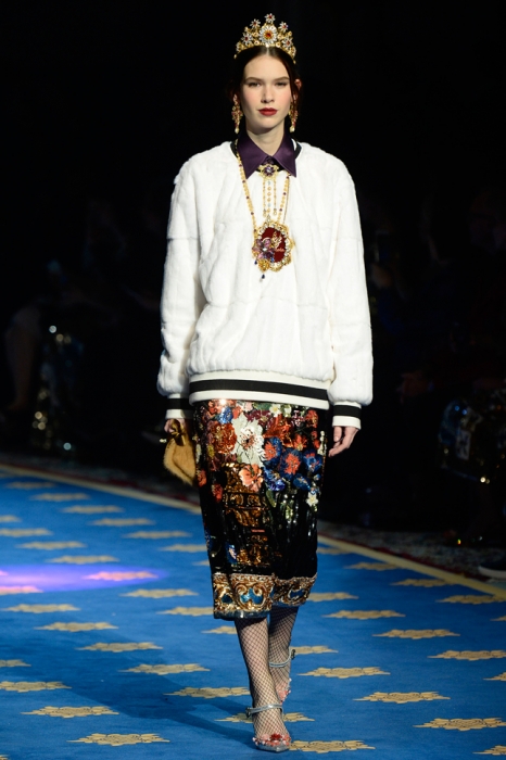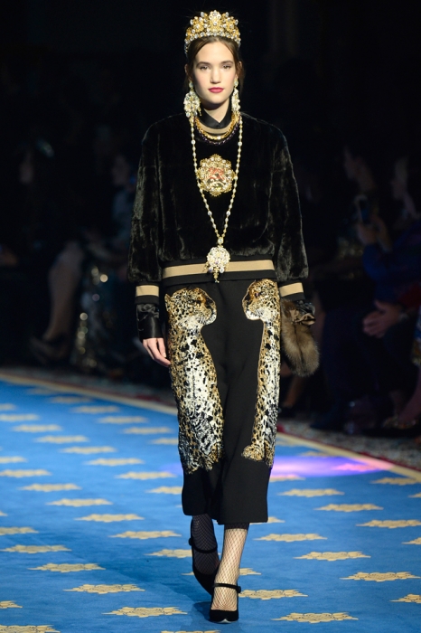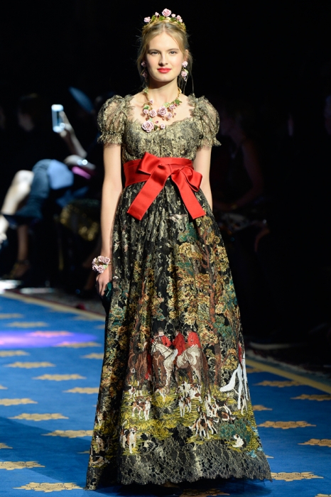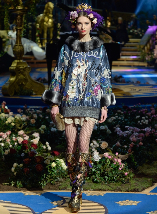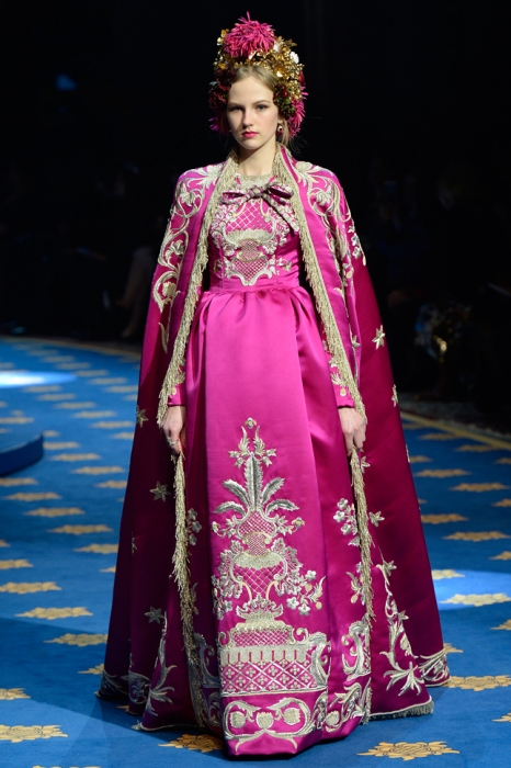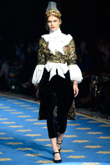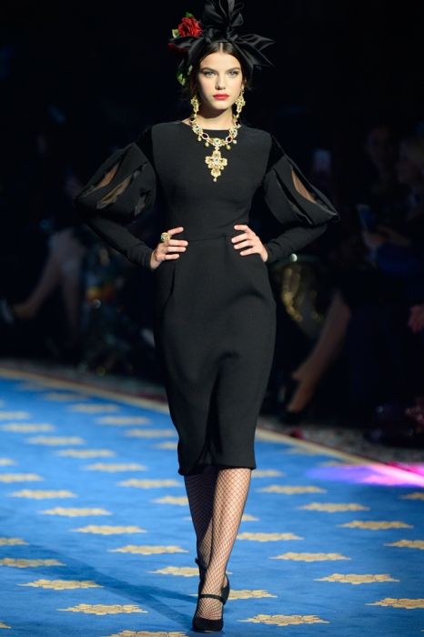 Dolce & Gabbana не участвуют в парижской неделе высокой моды, зато каждый сезон устраивают собственный показ кутюрной коллекии, локация для которого все время меняется: Сицилия, Венеция, Капри или родной для дизайнеров Неаполь. Весенне-летнюю коллекцию Доменико Дольче и Стефано Габана представили в лаборатории театра La Scala, где готовят декорации к постановкам.