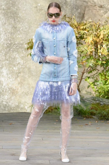 Плохая погода, похоже, беспокоит не только жителей России, но и самого Карла Лагерфельда, который сегодня показал новую коллекцию Chanel на весну. Из 88 образов больше половины были обернуты в пластик — дизайнер сделал из него шляпы, перчатки, сумки и дождевики, прячущие твидовые костюмы, белые жакеты и «праздничные» платья с перьями и рюшами. Теперь девушкам, которые выбирают одежду Chanel для красных дорожек, не нужно дожидаться конца дождя в лимузине — прозрачные водонепроницаемые накидки отлично дополняют кутюрный лук (особенно если замешать их с бриллиантовым колье и круглым дискобольным клатчем).