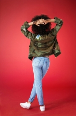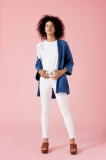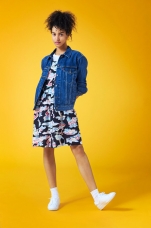 Женская коллекция, навеянная модой Восточного побережья, характерна яркими цветочными принтами и вышивкой, придающей моделям женственность. Дух уличной моды 90-х воплощен в силуэтах джинсов скинни пастельных весенних оттенков и новинкой сезона: джинсов с высокой посадкой 720 High Rise Super Skinny.