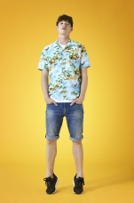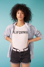 Настроение и стиль Западного побережья переданы с помощью тропических принтов и изображений пальмовых деревьев. Материал, из которого изготовлены вещи настолько мягкий, что их не захочется снимать все лето. Футболки, майки и шорты - must have фестивального сезона. Шорты с завышенной талией, футболки с принтами и игривые ромперы помогут каждой девушке выделиться из толпы.