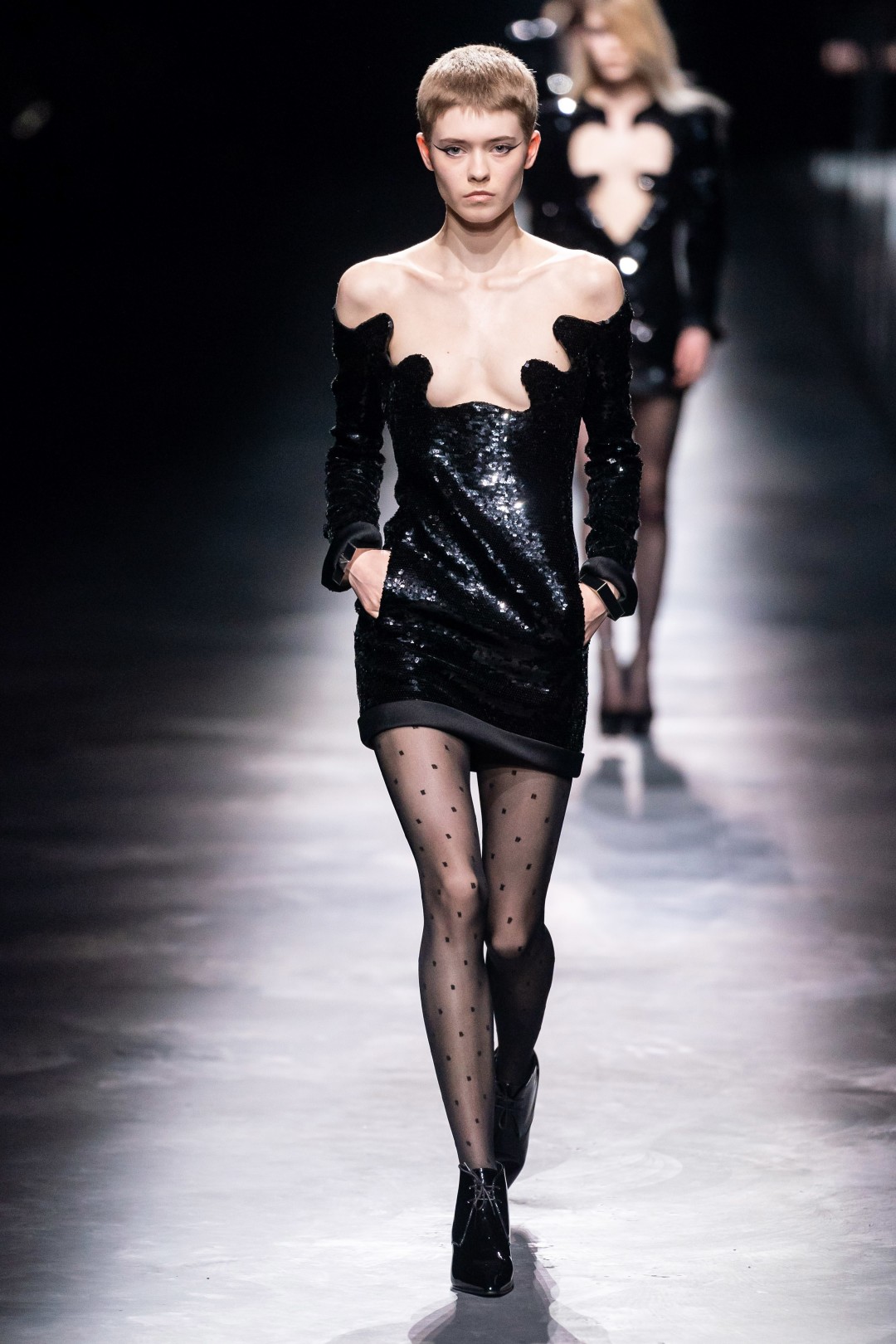 В Париже прошел показ осенне-зимней коллекции Saint Laurent — с не по погоде короткими платьями, юбками и шортами, а также костюмами, надетыми на голое тело. В этот раз Антони Вакарелло вдохновлялся «звездной» историей модного дома — образами Ива Сен-Лорана для Катрин Денев (например, леопардовой сорочкой с фотографии творческого дуэта от Хельмута Ньютона), для Бетти Катру (длинными юбками с завышенной талией и комплектами в стиле сафари) и для Бьянки Джаггер (белым костюмом с ее свадьбы с Миком Джаггером).