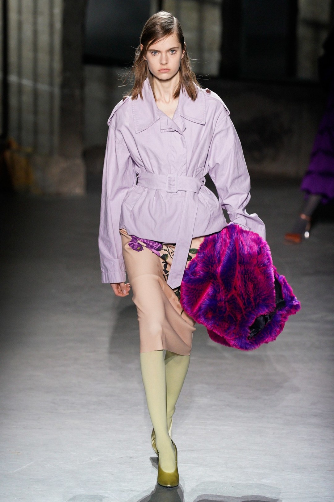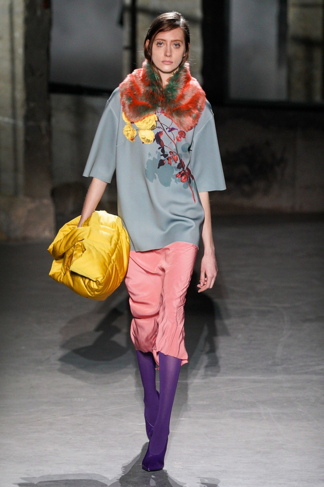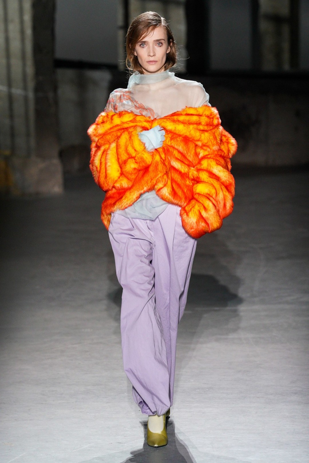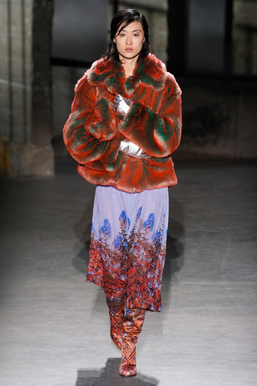 Новая коллекция Dries Van Noten: пуховики в осенней листве и воротники из эко-меха
