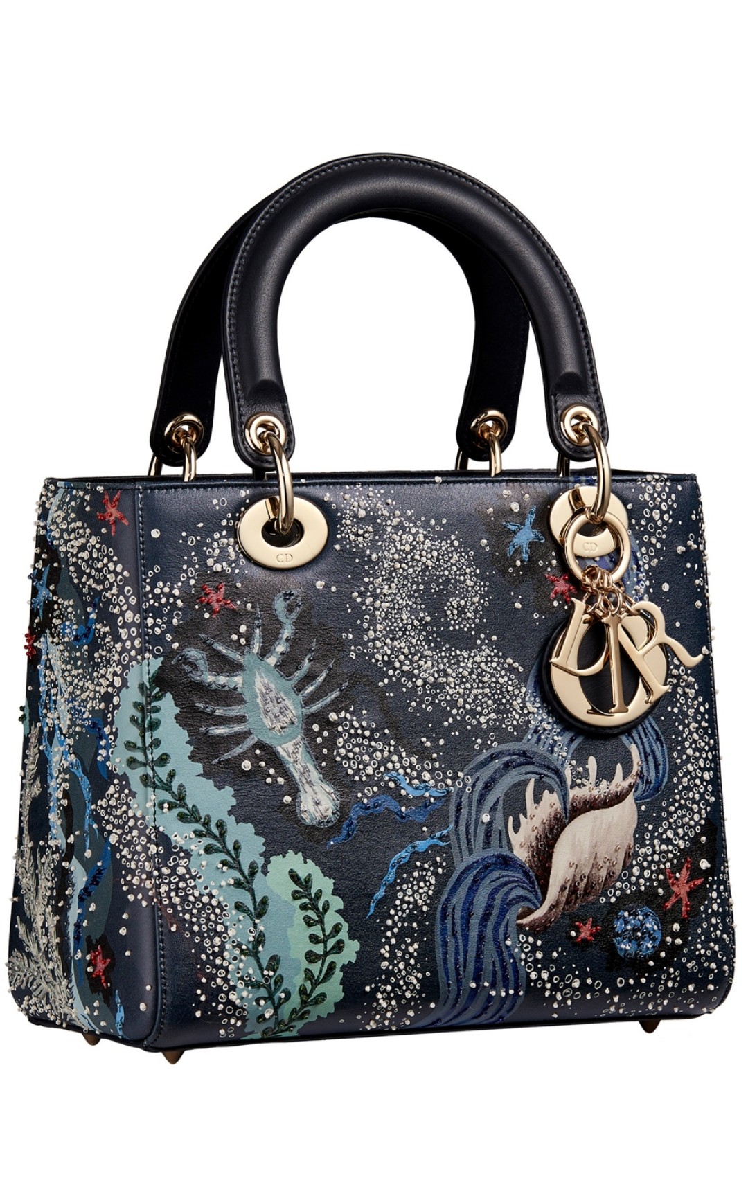 Сумка Lady Dior из линии Nature Ballet воспевает стихии воды и танца! Морские звезды, раковины и водоросли сплелись в причудливых и плавных движениях, будто в балете Марты Грэм! (Dior)