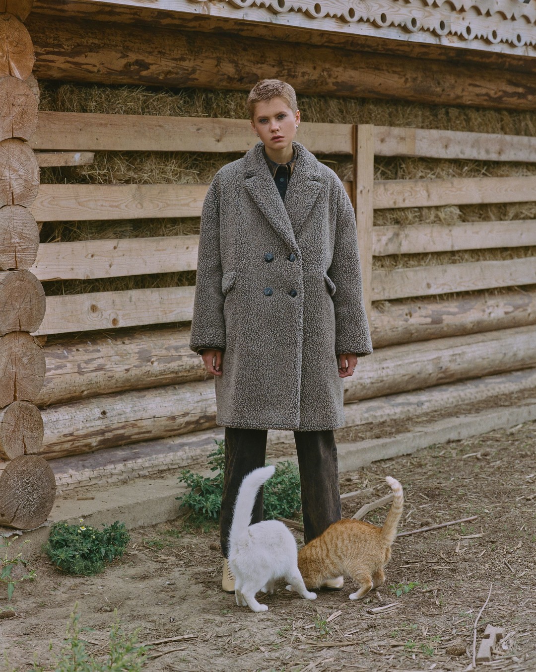 Главной вещью марки остается пальто — удлиненное, напоминающее военную форму, или из искусственного меха, будто бы плюшевое. Некоторые из них (как и брюки с завышенной талией, свитер с гипнотическим принтом и теплое вязаное платье) уже поступили в продажу на сайте forma-forma.ru, а также приедут в Subbota Showroom в Петербурге.