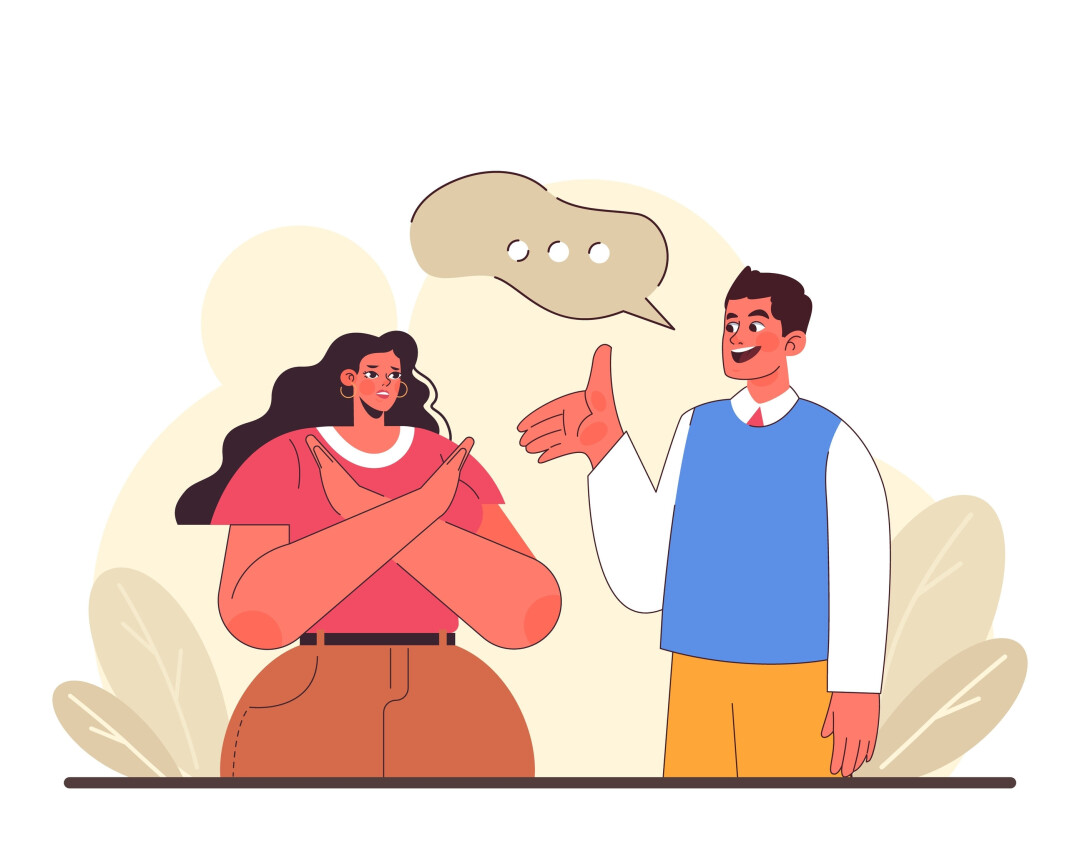 Выражение своего мнения без тревоги включает умение говорить «нет», устанавливать личные границы — хотя они могут быть и подвижными — реагировать на критику и проговаривать свои мысли и чувства уверенно.