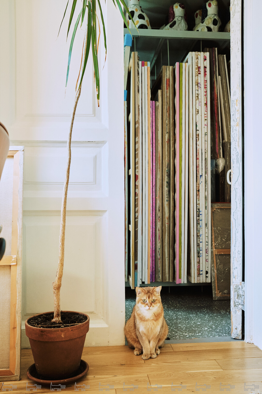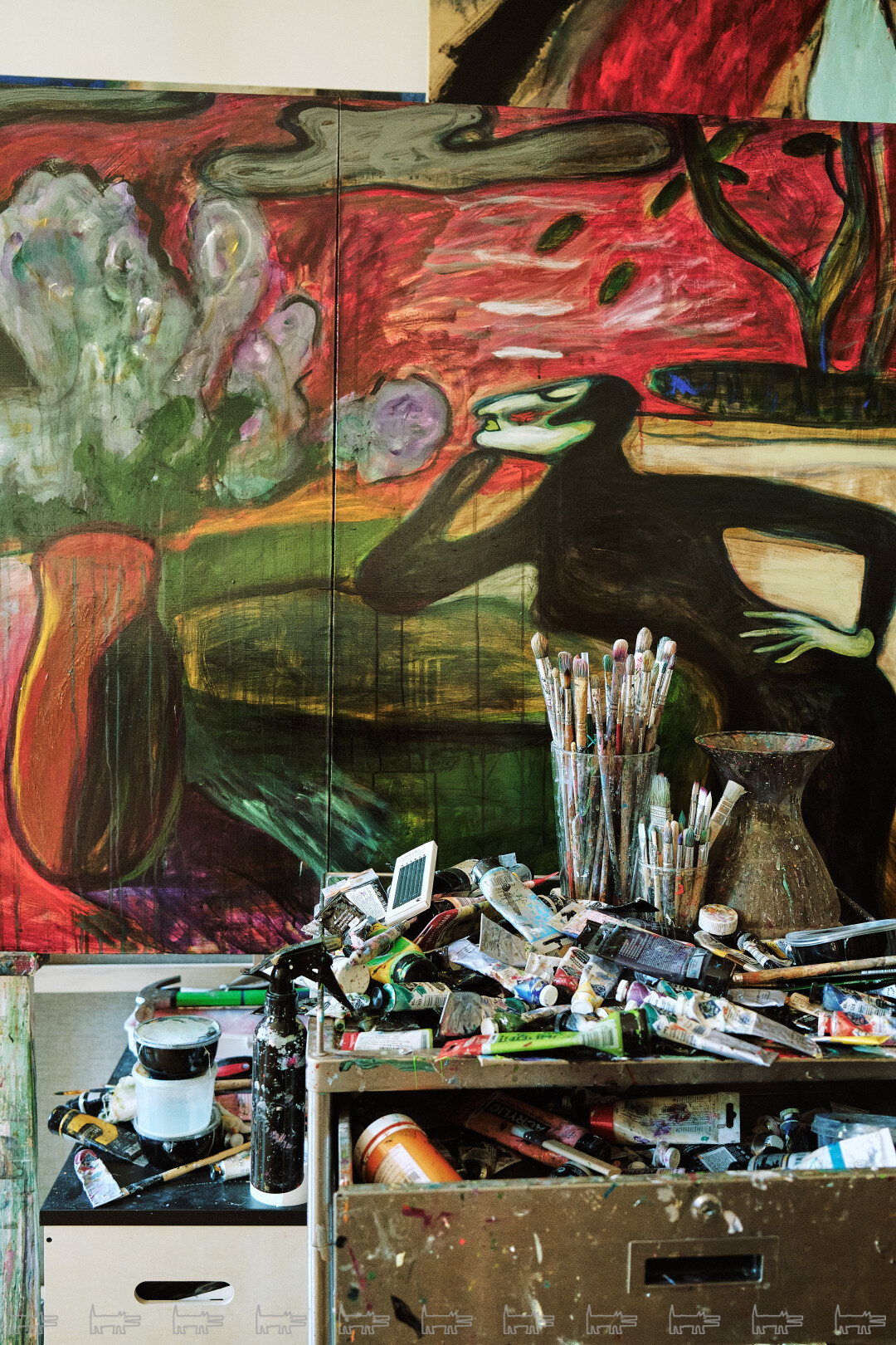 Конечно, я подумываю про отдельную мастерскую, но сейчас не до этого и я пока справляюсь — вообще люблю работать дома, могу по три дня никуда не выходить. Когда-то эта квартира казалась огромной, но теперь здесь все так завалено искусством, что я пробираюсь в гостиную по каким-то тропинкам, и кажется, что все это меня скоро выселит из дома.