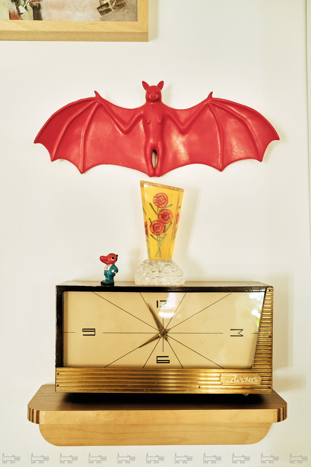 Я потихоньку начал коллекционировать искусство: просто покупаю, что нравится, безо всякой генеральной идеи. В основном, графику, но есть и живопись, и скульптура, например, известного уральского графика 1960-х Виталия Воловича. Работ Бориса Свинина, автора монументальных композиций для Российской национальной библиотеки на Московском проспекте, у меня две: деревянная и бронзовая, одну купил у внука скульптора, вторую — у коллекционера. Имеются две резиновые летучие мыши Дениса Прасолова — красная и черная. Еще в моей коллекции есть Андрей Бартенев, Шишкин-Хокусай, Андрей Андреев, скульптор Андрей Антонов, Роман «Рамона» Якубсон и другие. У меня даже есть работа целительницы Джуны, которая в 1970-х лечила своей энергией Брежнева. Оказывается, она занималась живописью и написала около 700 работ. Мне досталась одна — у нее, правда, слишком активный цвет, нехарактерный для моего интерьера, и я все думаю, куда ее применить, а пока просто прикладываю к себе, если что-то болит.