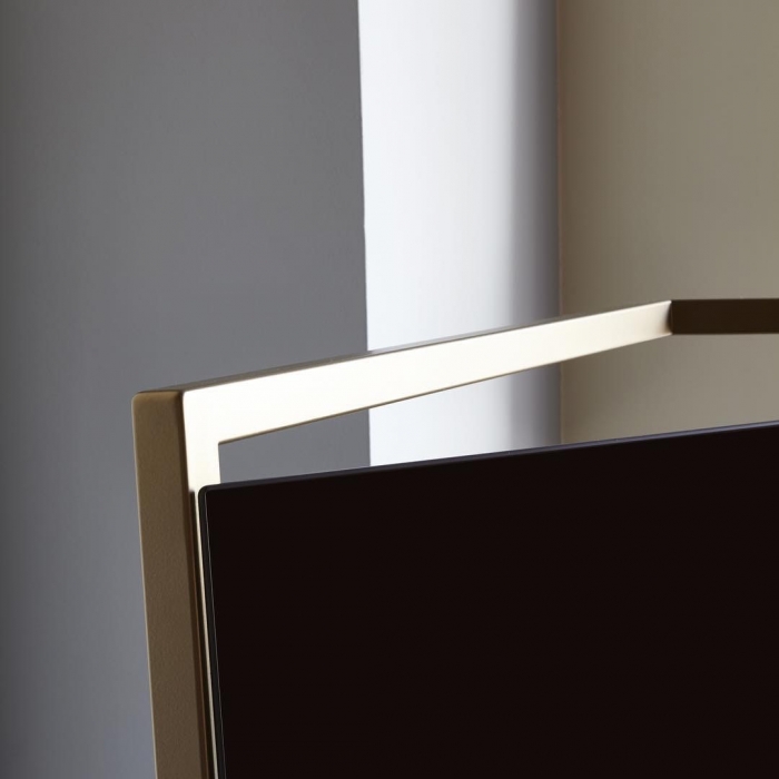 Сперлайн начал с создания новой неординарной формы для стальной стойки, вдохновляясь линейными скульптурами и создавая объем из перспективы, используя отделку латунью или серым графитом. Вместо попыток сделать телевизор незаметным в интерьере, он делает его центральным, основным объектом. «Да, это телевизор, но он притягивает взгляд, как объект дизайна, при этом не стремясь быть модным», объясняет Сперлайн. «Некоторые бренды ударяются в ретро, но я не хочу идти по этому пути. Этого нет в ДНК Loewe. Мы отличаемся от остальных. Loewe – это роскошь.»