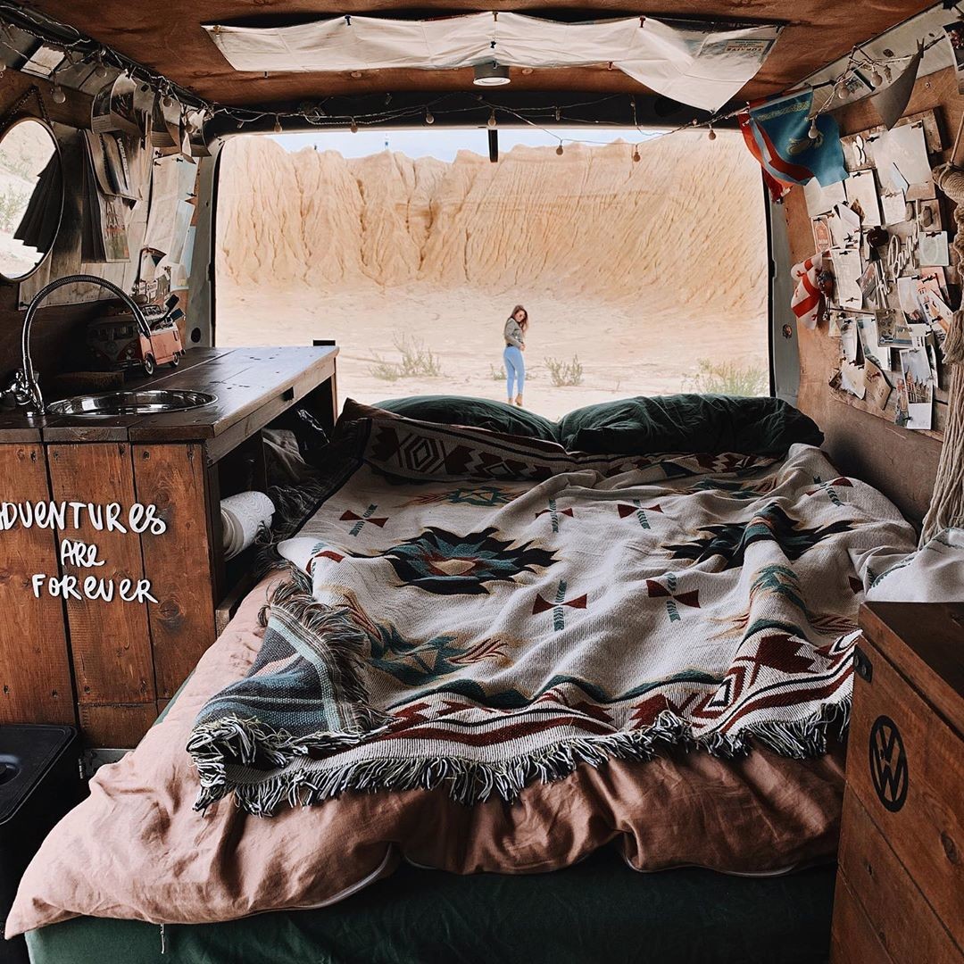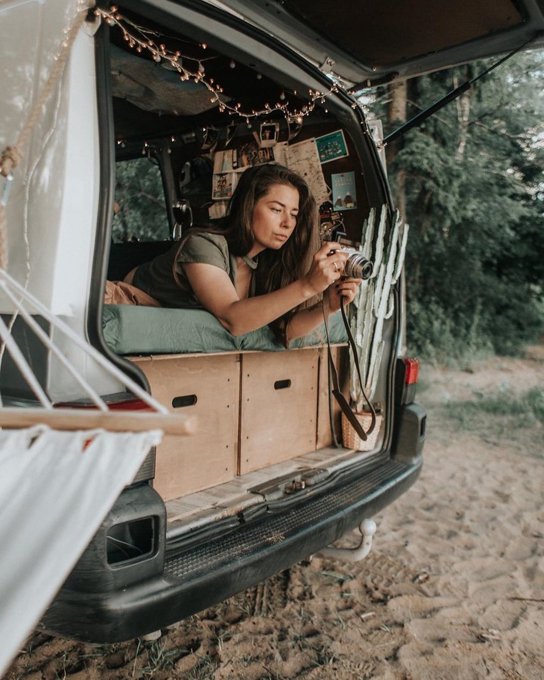 Автодом можно построить самостоятельно, как и сделали Люба и Паша. Если купить машину с пробегом, это позволит поначалу сэкономить. Приключение начнется еще до того, как вы решите куда-то отправиться. Ребята переоборудовали под путешествия Volkswagen T4. У них туда поместилась кровать, раковина и тумбочка. Под спальным местом – два больших ящика, в которых хранятся вещи и летняя кухня. Сейчас ребята решают проблему с душем, устанавливают сейф и холодильник.