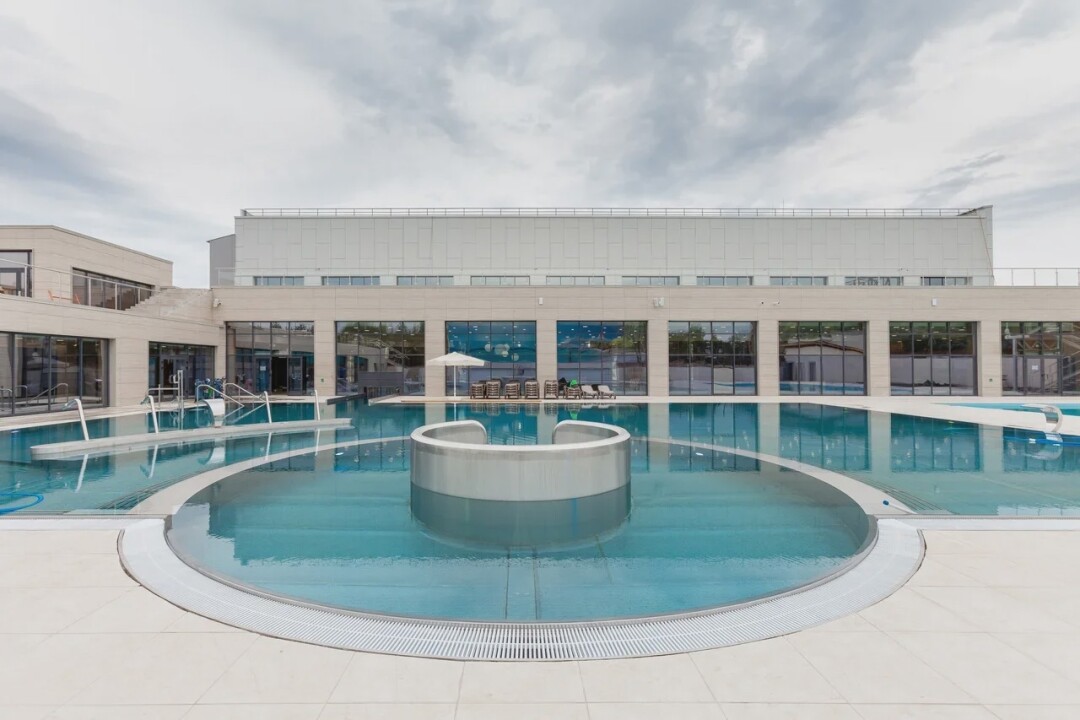 Комплекс зовет сам себя «курортом без перелета» — и эти слова близки к правде. В «Термах» есть закрытые бассейны для детей и взрослых, десять разных бань и саун, массажный и спа-салон, но главное — на улице работает большой бассейн c гидромассажем и бассейн поменьше с соленой морской водой. Вокруг уличной аквазоны летом расставлены шезлонги и зонтики: если не смотреть на многоэтажки вокруг, можно представить, что ты на море. Зато еду с собой можно не брать: на территории комплекса кормит ресторан-столовая Food Park.