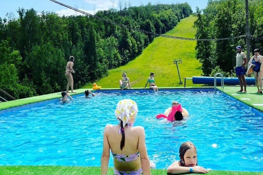 Если сейчас позвать друзей купаться на «СОК», никому и в голову не придет, что ты имеешь в виду не речку, а горнолыжный комплекс, который раньше работал только зимой. В 2023 году владельцы смекнули, что горы актуальны круглый год, и соорудили большую аквазону у подножия. Большой бассейн для взрослых и лягушатник для детей, шезлонги, бесплатные полотенца и активные игры: от дартс и пинг-понга до волейбола и футбола. А по выходным здесь работают диджеи, так что, если бы не удаленность от берега, «СОК» мог бы посоревноваться с лучшими пляжами Средиземноморья.