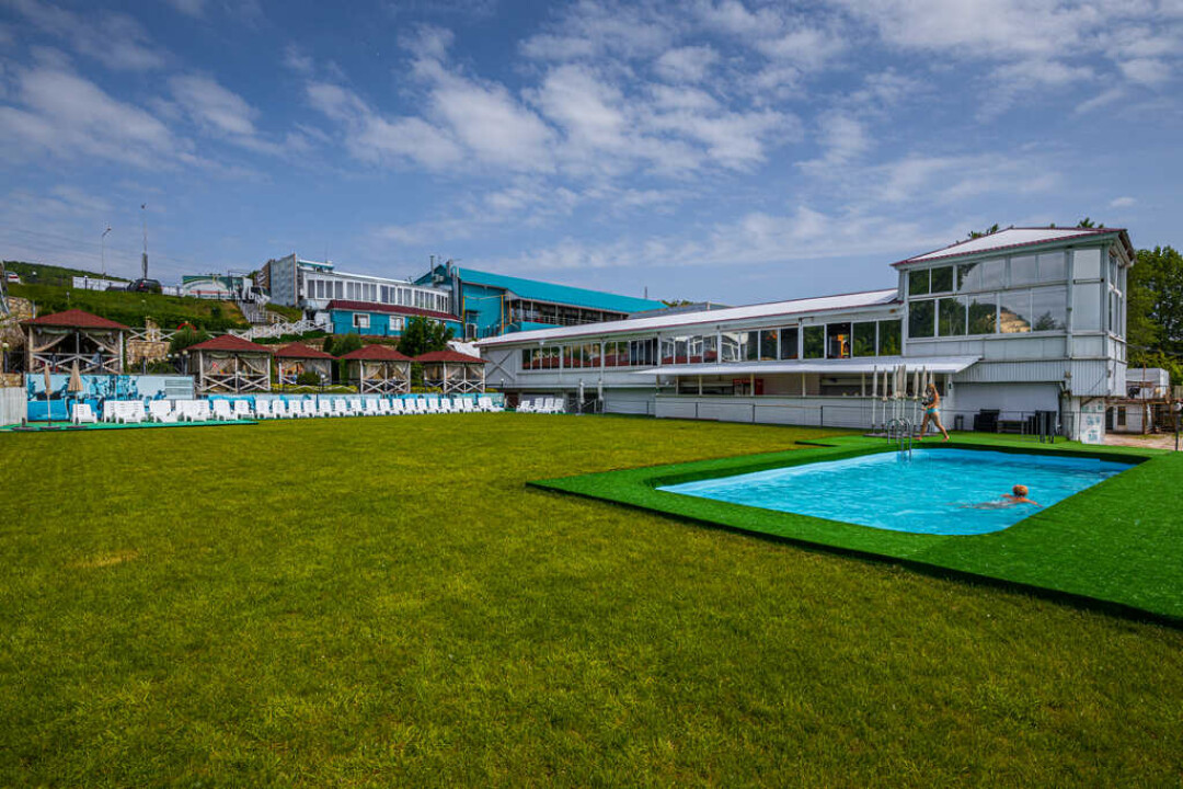 На огромной территории санатория есть большой закрытый бассейн длиной 25 метров, но летом большей популярностью пользуется уличная аквазона под открытым небом. Правила у «Самарского» строгие, искупаться здесь могут только проживающие — купить дневное посещение не получится. Зато при бронировании номера можно заодно выбрать целый спектр водных лечебных процедур: от серных ванн и душа Шарко до того самого пантолечения.