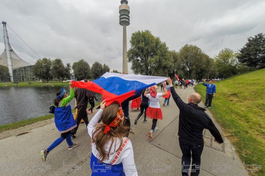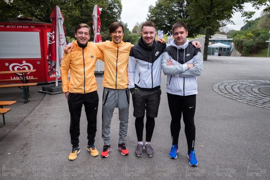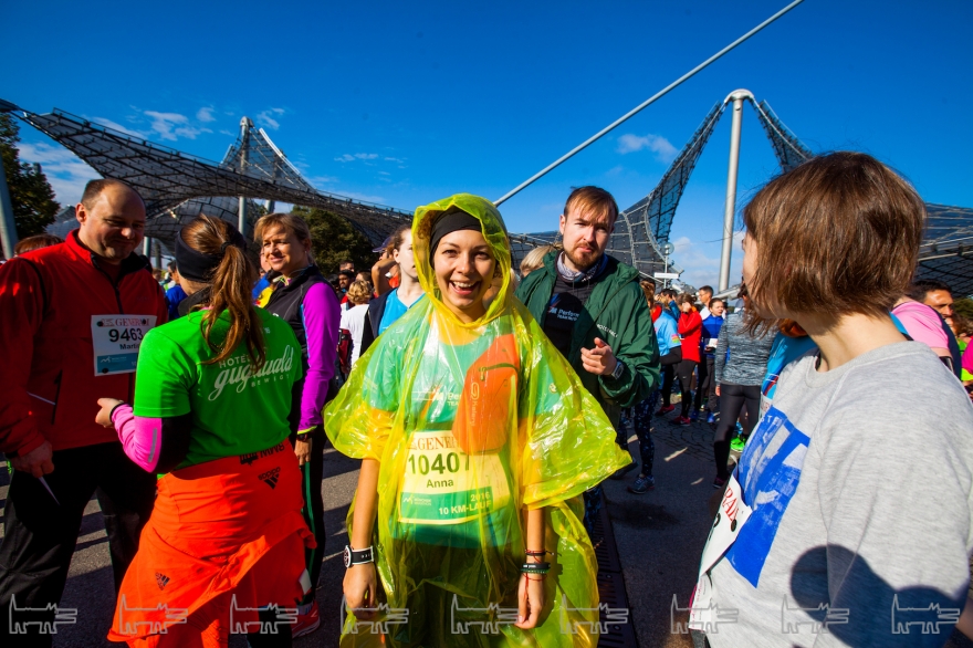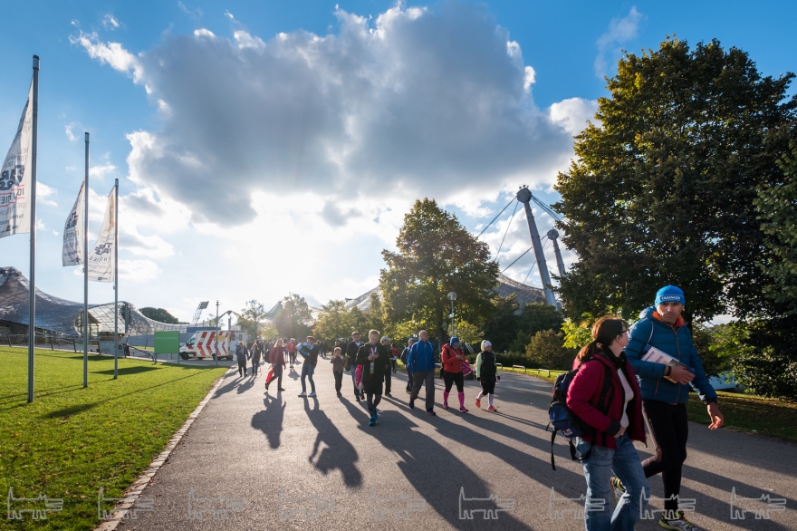 Из-за марафона все дороги в городе были перекрыты. Зато метро работало без оплаты, и мы удобно добрались до Олимпийского парка, где и был назначен старт забега. Погода в Мюнхене стояла дождливая, но в день забега выглянуло солнце и практически мгновенно улицы подсохли.