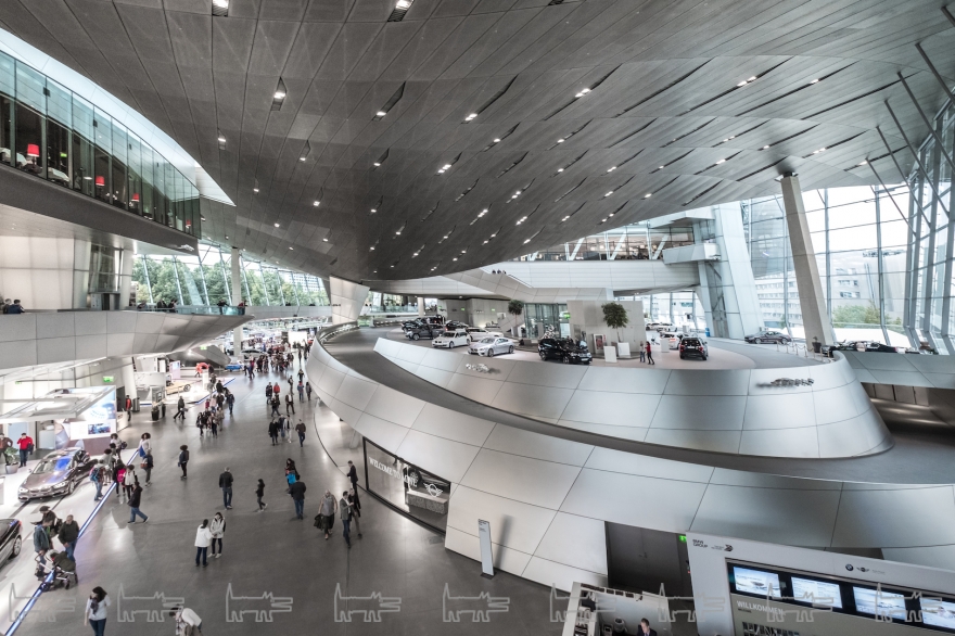 Рядом с музеем - башня, напоминающая блок цилиндров автомобильного двигателя, высотой в 22 этажа. Это главный штаб концерна. А буквально в десяти минутах ходьбы - совершенно космическое сооружение, здание BMW-Welt («Мир BMW»). Хотите оказаться в гуще новейших технических свершений? Тогда вам сюда. Это самая большая рекламная площадка концерна и одновременно салон продаж, парк аттракционов, выставочный павильон новейших моделей, проектов, которым еще предстоит выйти на конвейер.