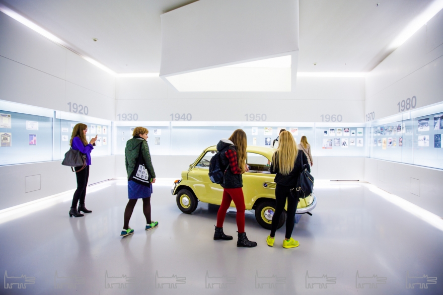 Первая остановка – музей BMW - «крышка бензобака», как было задумано архитекторами. Но в народе здание называют «салатницей» или weißwurstkessel - кастрюлей для белых колбасок. Здесь все об истории концерна. Первые авиационные двигатели, первый мотоцикл BMW R 32... Проходя из одного выставочного зала в другой, как будто перемещаешься во времени: перед глазами более 120 экспонатов легендарных машин за почти сотню лет работы концерна.