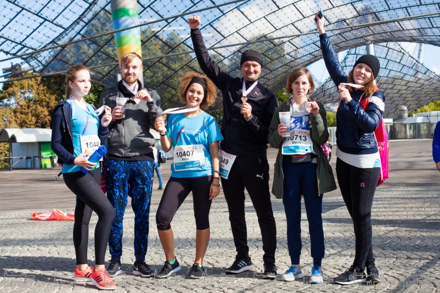 Стартуют участники в Олимпийском парке, финишируют - на Олимпийском стадионе, как и 30 лет назад. Рядом с ратушей на Мариенплац размещена сцена, мимо которой мы пробегали, а ведущий выкрикивал имена бегунов. Зрители при этом запускали традиционную футбольную «волну». Потрясающе пробегать почетный круг в конце дистанции на стадионе под аплодисменты. Это непередаваемое ощущение!