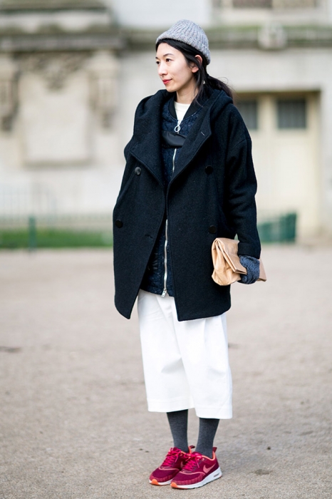 Несколько основных моментов, что можно наблюдать в общих тенденциях парижанок: их наряд не несёт в себе яркие цвета. Все оттенки монохромные , приглушённые: черный, серый, бежевый, темно-синий, хаки! В 70% случаев парижанка в дневное время будет одета в брюки. Они чаще прямой формы, есть те, кто носит длину 7/8 или форму кюлотов, реже - это джинсы .