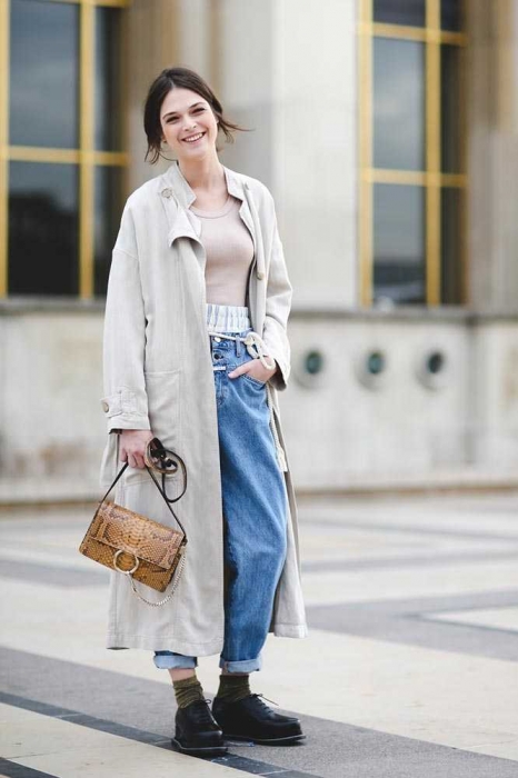 Наряд француженки многофункционален, в нем присутствует многослойность. Объясняется это резкой сменой погоды в течение дня! Утром на улице может быть очень холодно, и, как правило, на женщинах надеты рубашки, поверх теплые кофты, шарф и верхняя одежда в виде тренчкота, куртки или жакета. Поэтому в гардеробе француженок предмет верхней одежды не единичный вариант для любого случая , а несколько видов разного стиля.