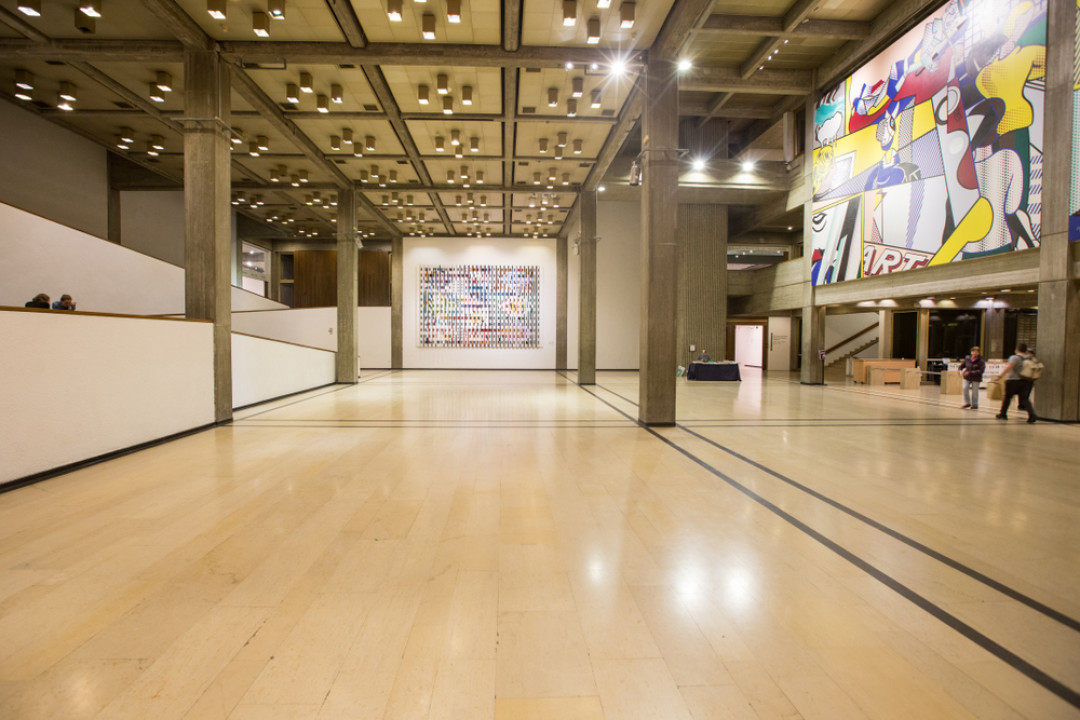 Директор музея Марк Шепс в 1989 году пригласил Роя Лихтенштайна для создания панно, которое отобразит стиль знакового художника поп-арта. Мурал состоит из двух частей: первая — абстрактная, а вторая — фигуративная. В этой композиции Лихтенштайн использовал образы шедевров Пабло Пикассо, Оскара Шлеммера, Марка Шагала и скульптора Александра Архипенко, которые хранятся у нас. Получилась авторская интерпретация музейной коллекции. Кстати, этот мурал — первое, что вы увидите, заходя в здание.