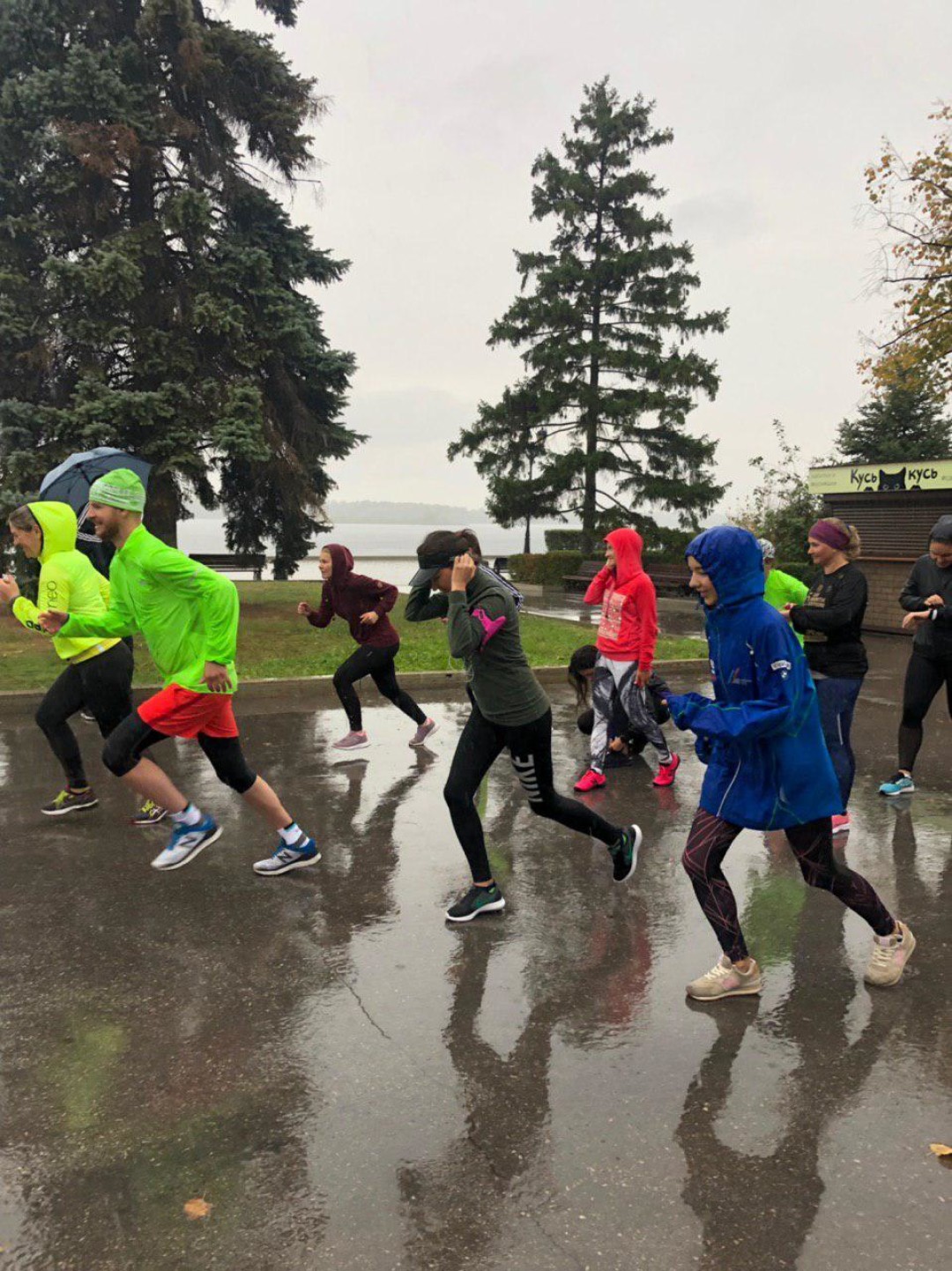 Встаю утром в день Х – а там ливень. У меня скользкие кроссовки, на плитке набережной, покрытой слоем воды, я чувствовала себя коровой на льду и очень боялась упасть. Но у нас в I Love Supersport погода погодой, а тренировки и забеги по расписанию.