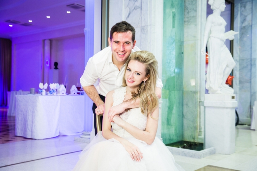 27 июня 2015-го, спустя год после знакомства пара поженилась в Петроградском ЗАГСе Санкт-Петербурга. Сама церемония, а затем и праздничный ужин в VIP-комнате ресторана Buddha-Bar прошли в узком кругу.