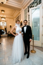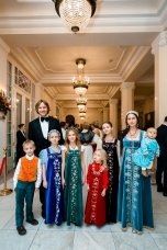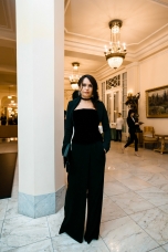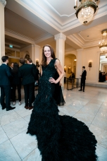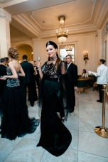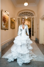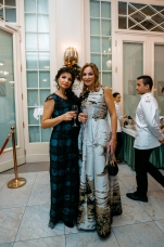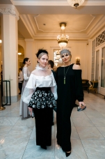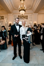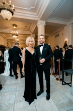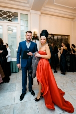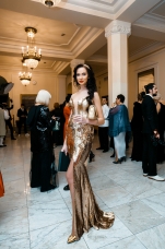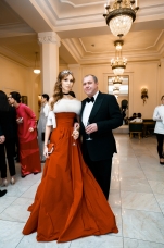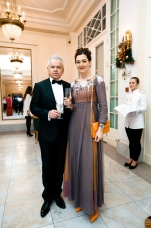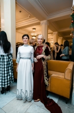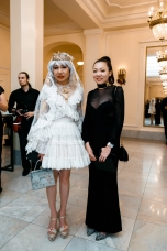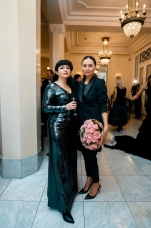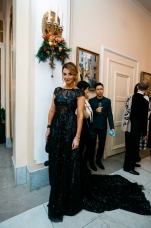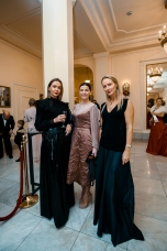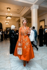 Орнаменты и фигурная стёжка, перламутровый бархат с оттенками уходящего солнца, живопись по белоснежному хлопку, вышитые стеклярусом лилии на подиуме гармонировали с бальными нарядами фронтроу – светские дамы Москвы и Петербурга максимально соблюли дресс-код, также обыгрывая в своих нарядах лебединую тему, в результате по красоте кадра в каждый момент мероприятие конкурировало с фильмами Николаса Уиндинга, не меньше.