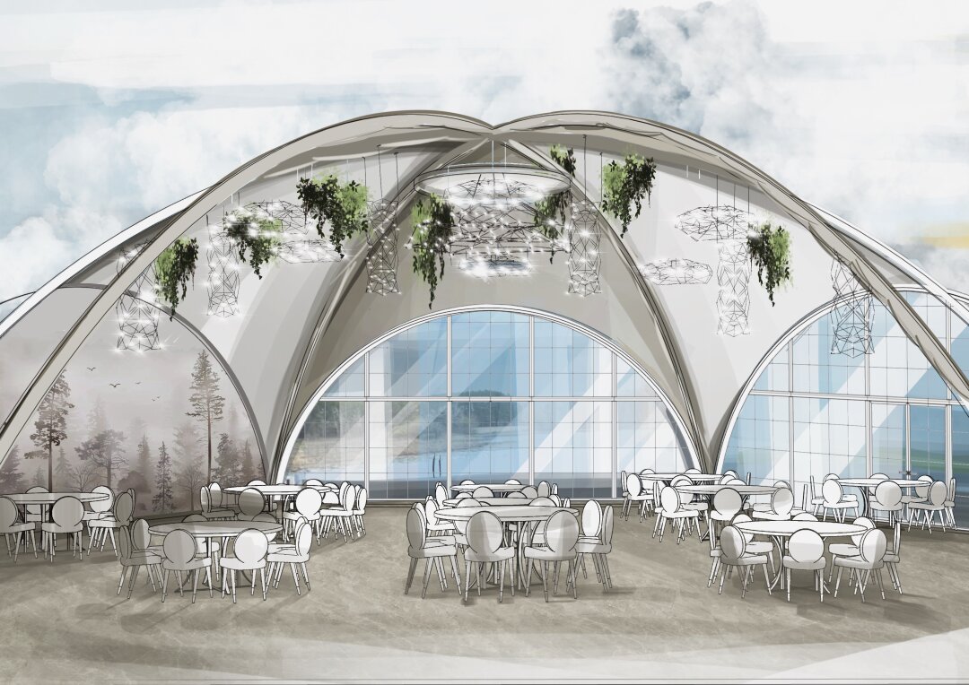 Главный плюс этого места – удаленность от городского шума, но в то же время – относительная близость к Самаре: добраться до загородного клуба удастся меньше, чем за час. Тем, кто особо волнуется за погоду в день мероприятия, стоит отложить переживания: банкетный шатер полностью застеклен, в прохладное время года здесь работает отопление, а в жару ситуацию спасают кондиционеры.