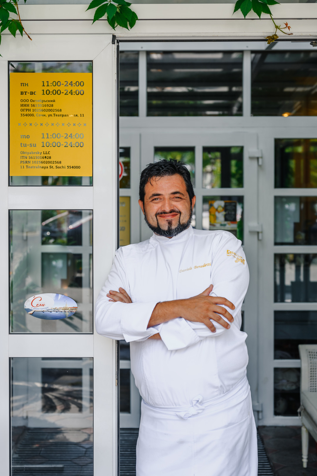 Бренд-шеф семейного ресторана «Феттуччине» всем сердцем любит итальянскую кухню, и за всю жизнь она ему не успела надоесть. Но как профессионал, который постоянно развивается, он пробует новые продукты и направления. Кухня для Даниэле определяет культуру страны, он черпает вдохновение в разных гастрономических точках мира. Так как в Италии не принято завтракать, то Даниэле и в Сочи это редко делает. Здесь ему не хватает идеального эспрессо, он