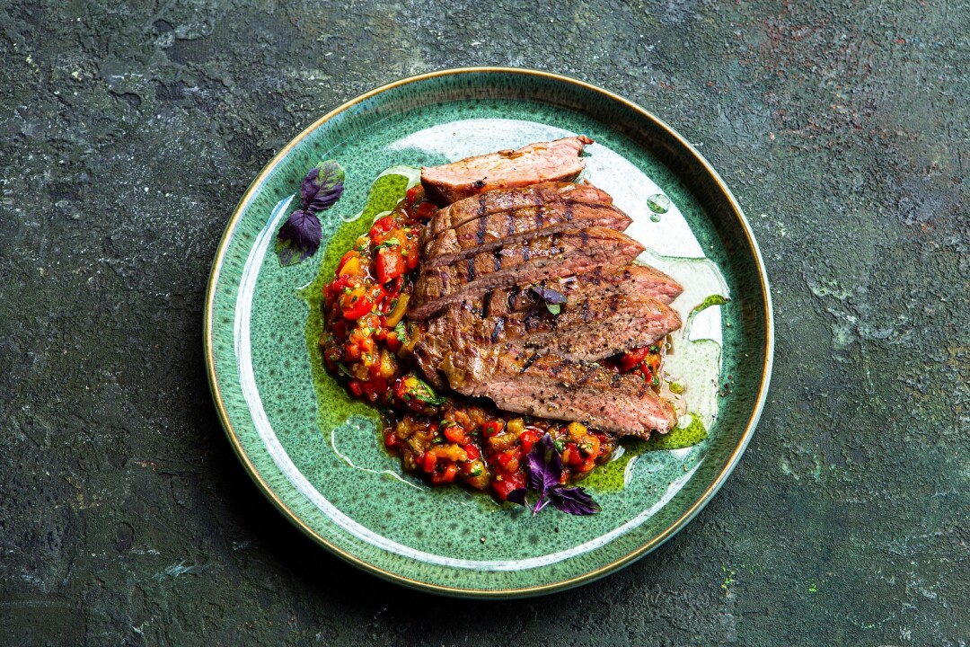 Стейки из так называемых альтернативных отрубов требуют особого внимания, если вы хотите получить гарантированно качественный результат. Шеф самарского ресторана с «говорящим» названием «Ваще огонь» знает в мясе толк. Маринад размягчит и обогатит фланк-стейк вкусами, а сальса добавит блюду огня.