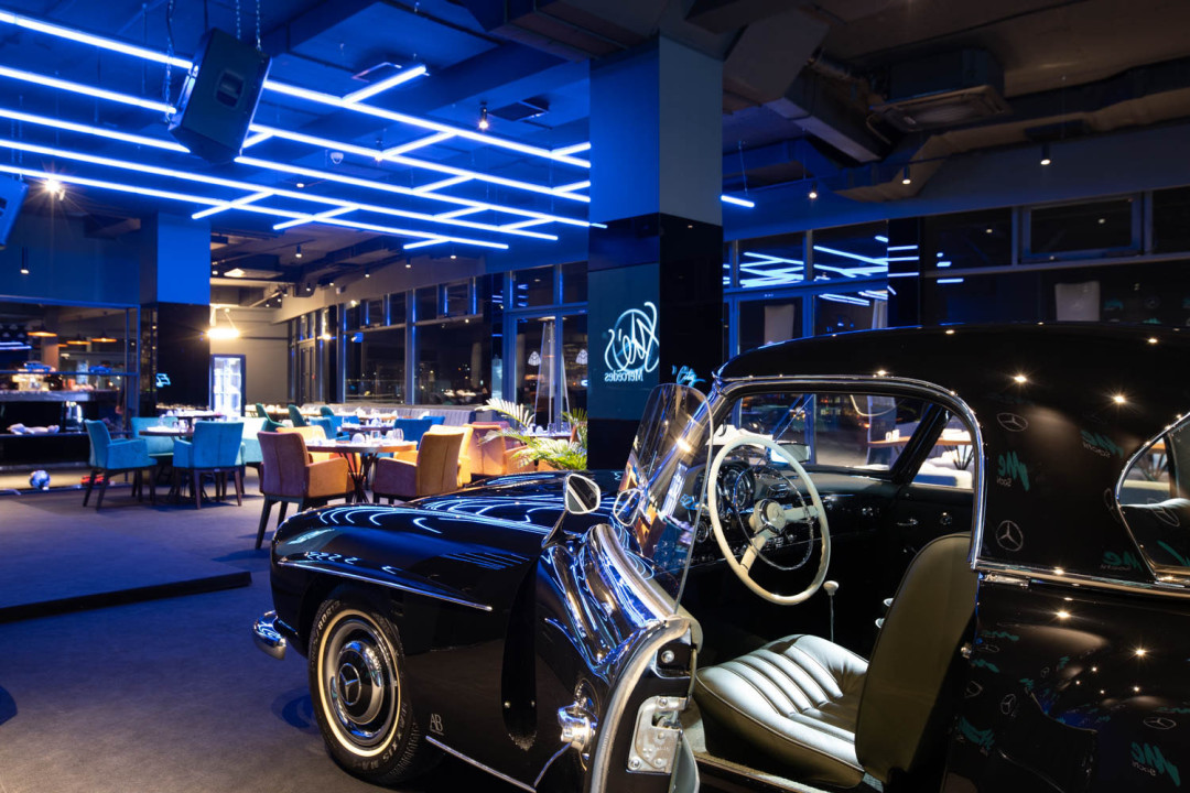 Минималистичный и выдержанный стиль в интерьере позволяет насладиться гастрономическим мастерством команды ресторана в предельной близости с самым узнаваемым представителем немецкого люкса.