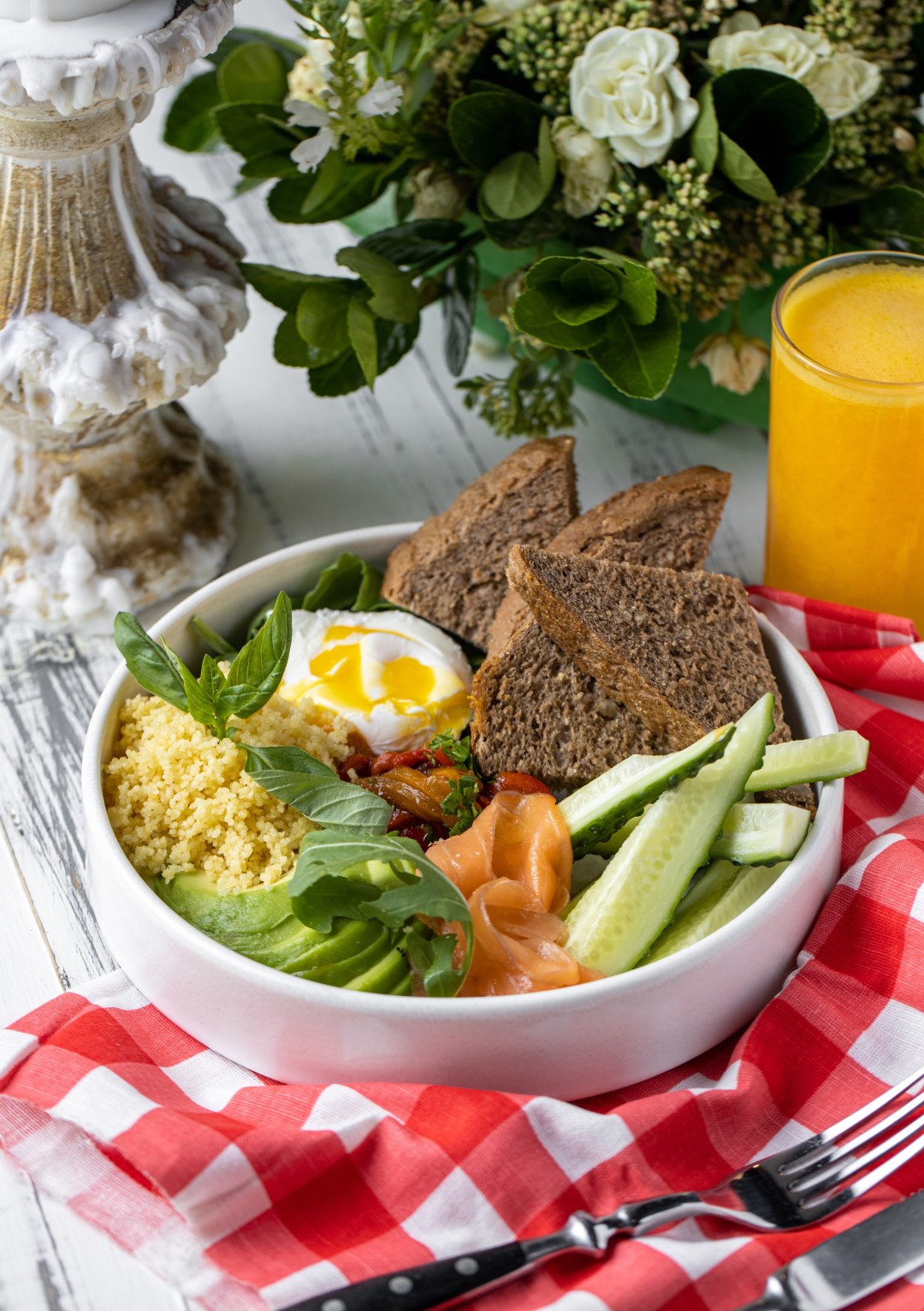 Вносим в обязательный перечень венские вафли с лососем и гуакамоле, овощи аль денте в кисло-сладком соусе и яйцом пашот и знаменитый завтрак по-сочински с бутылкой премиального игристого, черной икрой и блинами.