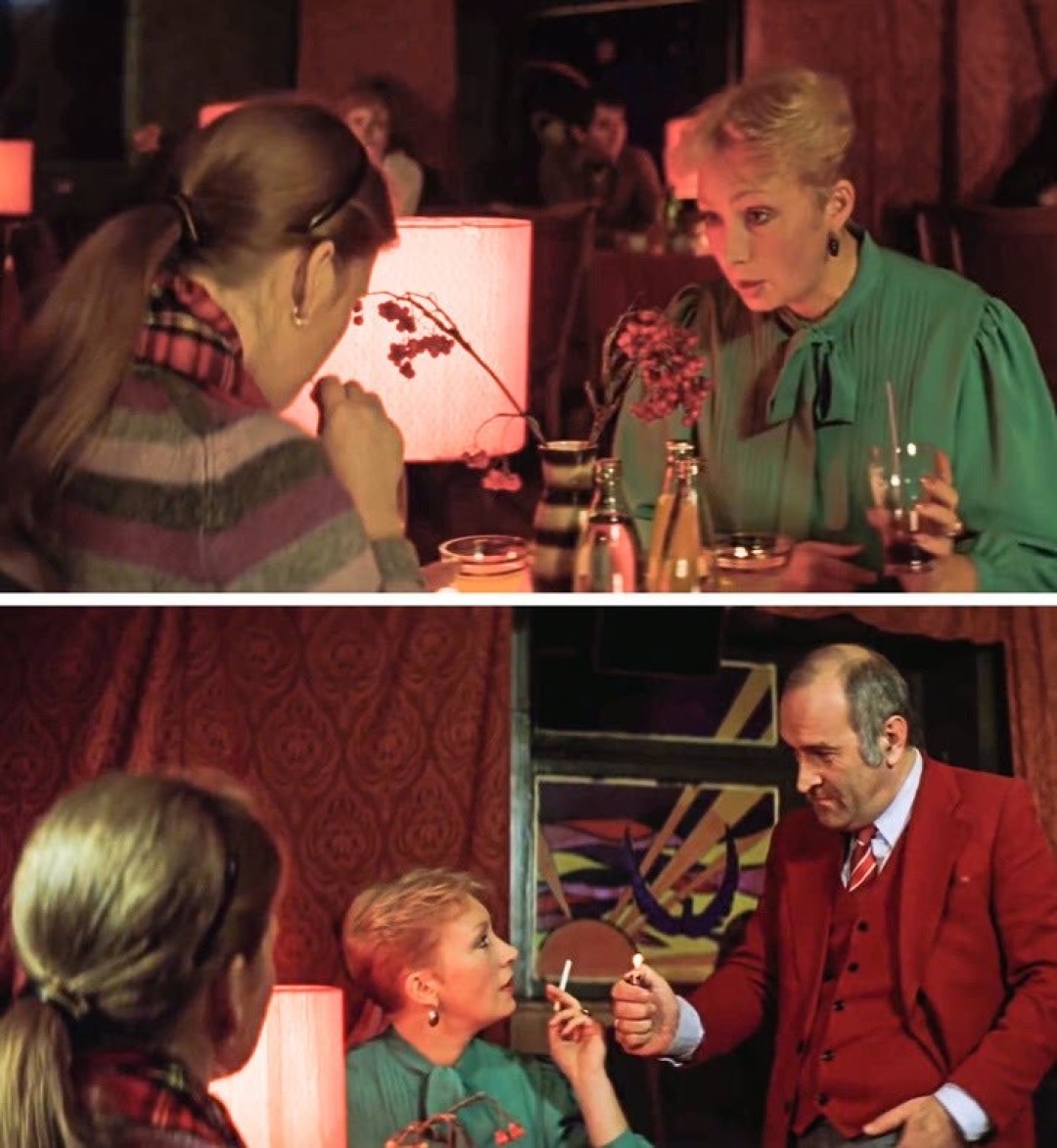 Столик, за которым сидят Надя и Сусанна в начале фильма, из центра зала внезапно перемещается к стене.