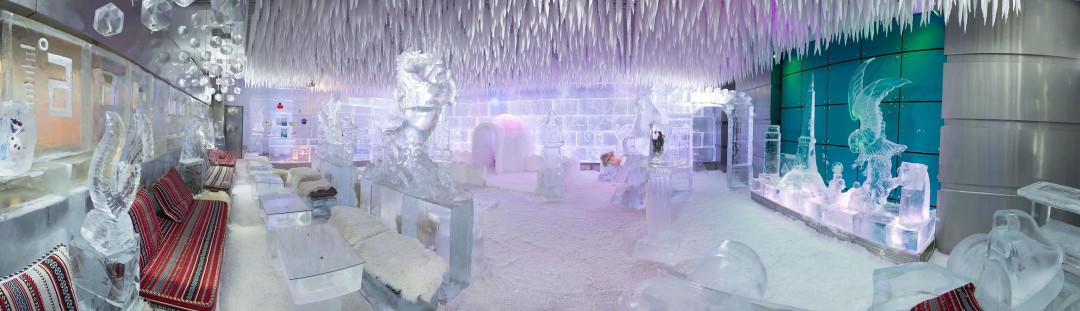 В Дубаи жители и туристы могут спасаться от жары в ледяном кафе. Оно полностью оправдывает свое название. В заведении все изготовлено из льда: столы, стулья, стойка бара, перегородки, люстры, занавески и даже некоторая посуда. Элементы декора, скульптуры и рамы для картин также полностью ледяные. Весь интерьер освещается с помощью разноцветных светильников, которые не выделяют тепло и эффектно подчеркивают мерцание льда. Средняя продолжительность визита в ресторан составляет 35-40 минут, так как даже в теплой одежде спустя какое-то время там становится холодно.