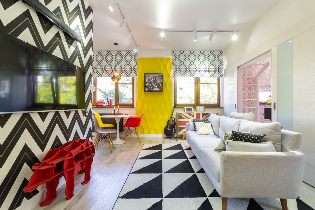 Забудьте о скучных однотонных интерьерах – в моде яркие сочные цвета. Дизайнер советует использовать в качестве основы черно-белую композицию, добавить два-три цвета на свое усмотрение, но придерживаться главного правила – один цвет должен быть доминирующим, остальные – добавочными.