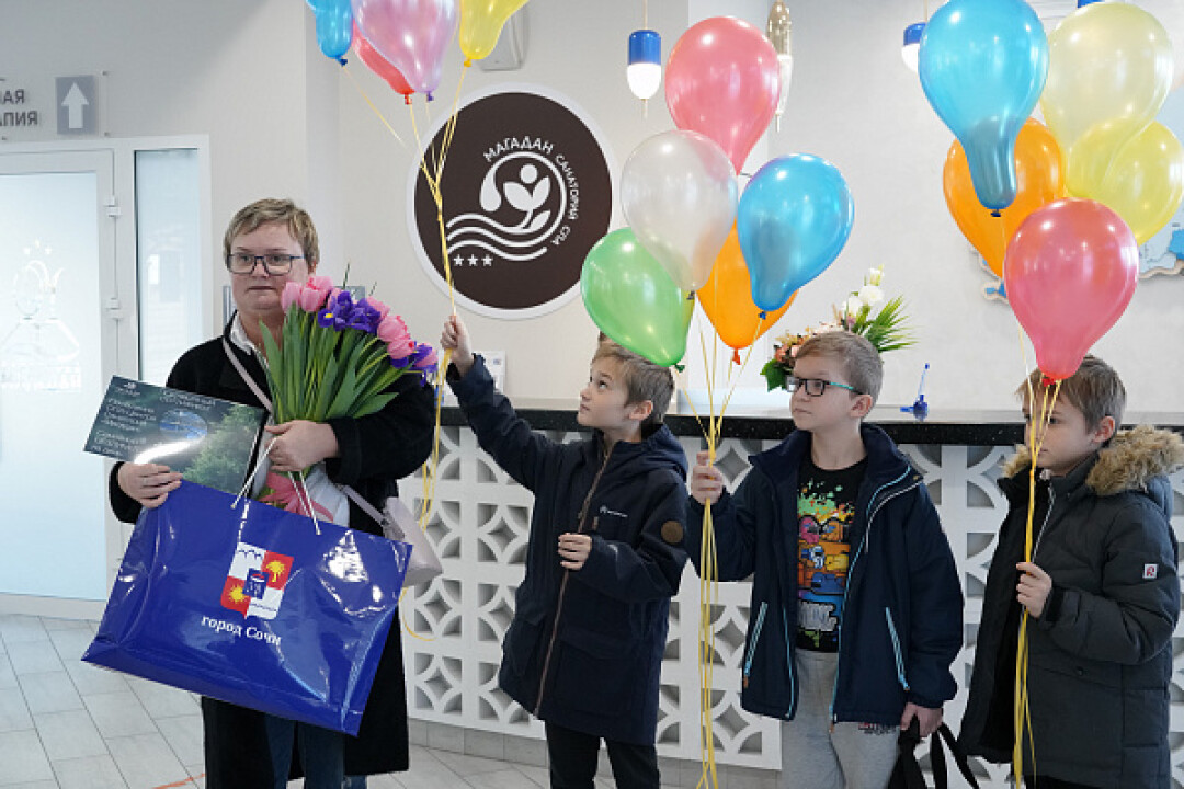 В санатории «Магадан» торжественно приняли миллионного туриста. Им стала Екатерина Федосеева, которая приехала с тремя сыновьями из Москвы. Семью торжественно встретили руководство санатория, представитель администрации курорта и вручили памятный сертификат и приятные подарки.