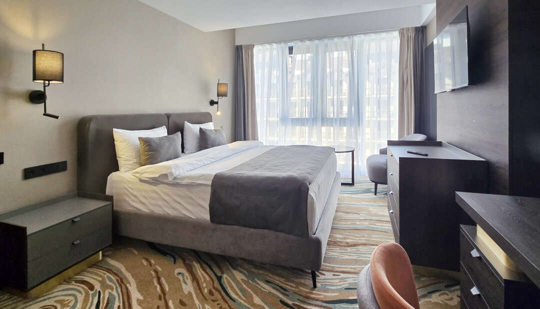 Комплекс 7Peaks Family Resort придумали люди, которые не только катаются, но еще и знают толк в отдыхе. Стандарты с балконами, двухкомнатные апартаменты, комфортные душевые, и матрасы, на которых идеально высыпаешься. И даже вай-фай не подводит (что в горах почти мистика).