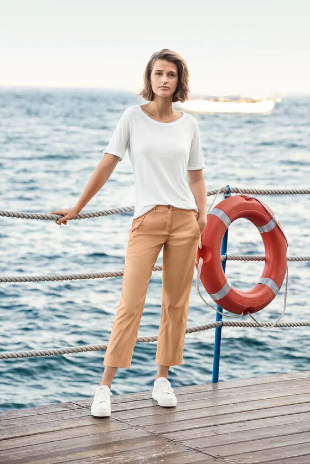 выбраны океан, джунги и флористика – графические рисунки и принты напоминают о тихоокеанском островном штате США. Поло и футболки пестрят оптическими узорами, вариациями клетки и небольшими ретропринтами. Чиносы и джинсы, кроме классического синего, представлены практически во всех доступных для глаза цветах. Тема экологии в BRAX вышла на первое место – запущена линия джинс Save the Blue Planet, в производстве которых в два раза сокращено потребление воды, электроэнергии и химикатов. Магия Brax в джинсах – целая философия бренда – купив которые однажды, вы не заметите, как со временем в гардеробе окажется еще парочка одноименных, но в других варках.