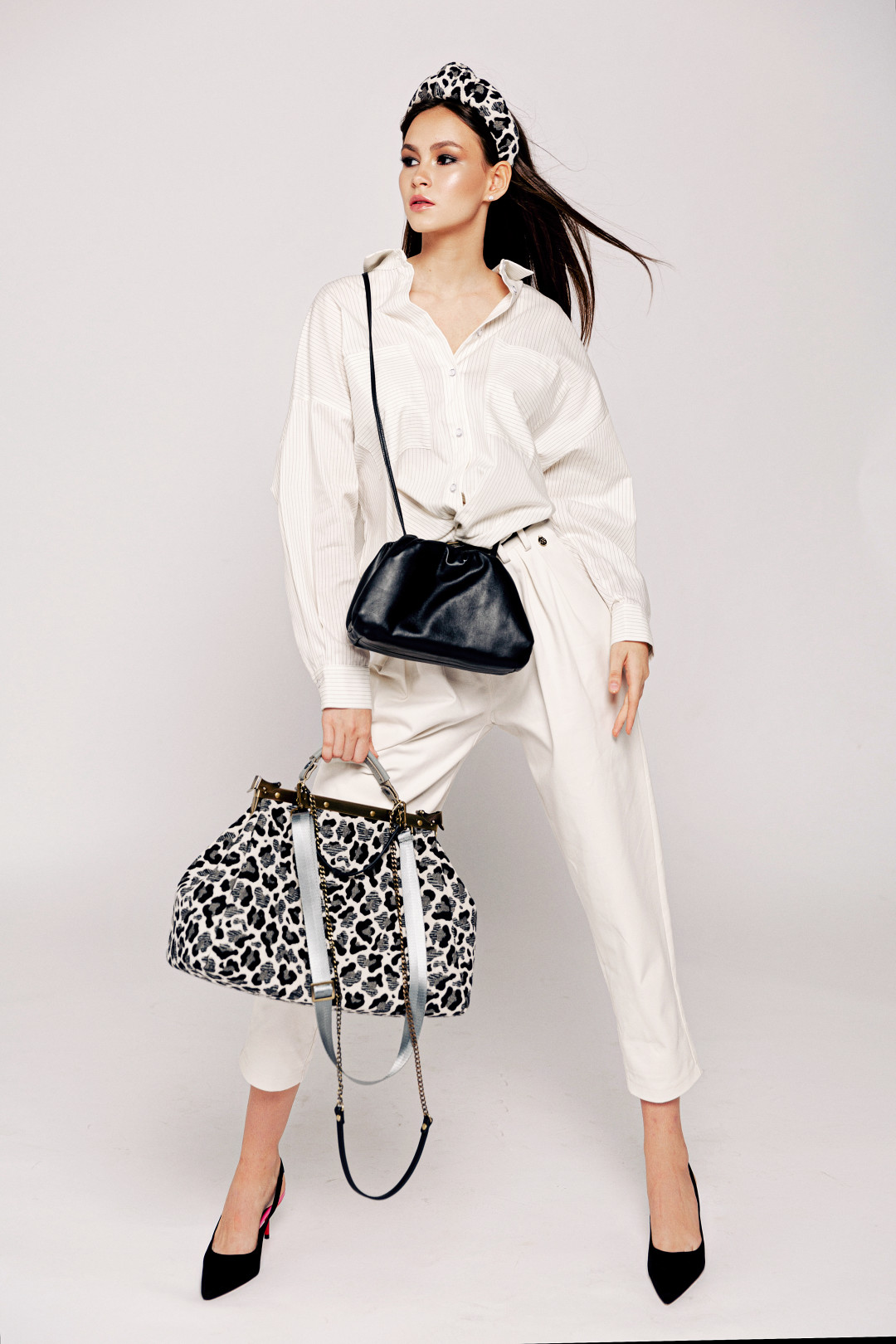 Мягкий кожаный клатч и саквояж Maria Darma. А главное – теперь можно носить хоть три сумки одновременно.