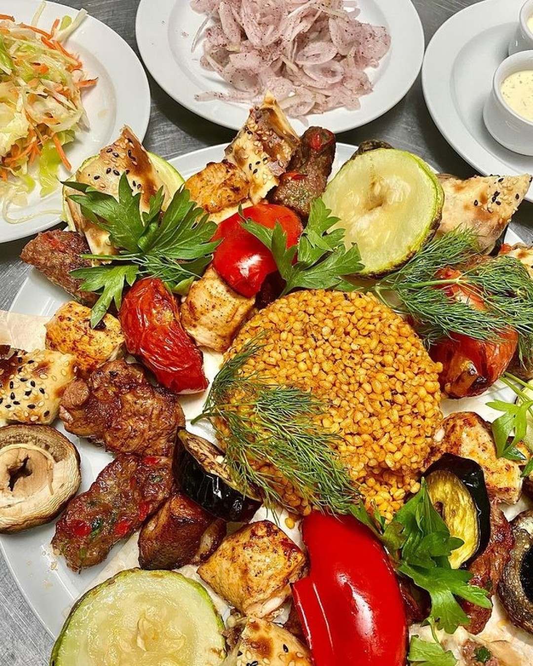 Заведение с пометкой «халяль» – это не только люля-кебаб и плов. Поварам этого кафе одинаково хорошо удаются как мясо на гриле, так и блюда различных кухонь мира. Пицца на тонком тесте с разными начинками, бургеры, пудинги и чизкейки – в «Биг шефе» огромный выбор еды. Must eat в этом заведении – ассорти-кебаб. В него входят филе курицы, сарма-кебаб, шашлык из баранины и себзели-кебаб с овощами на мангале.