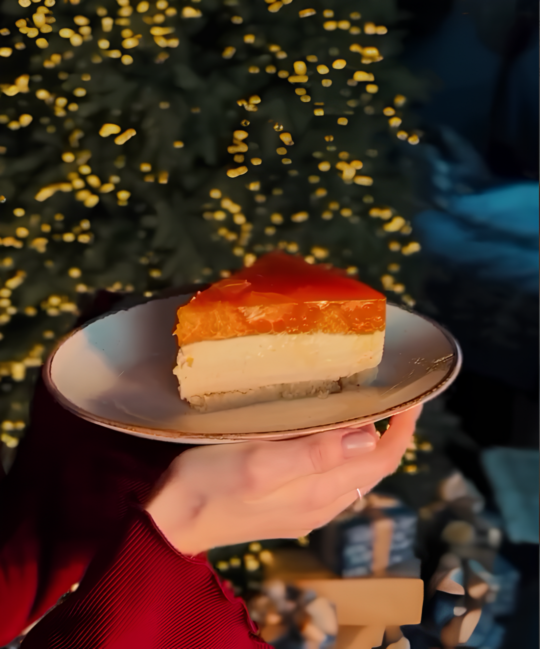В меню – новинка! В ресторане можно попробовать сырно-сливочный чизкейк со вкусом теплого молока и с мякотью мандарина.