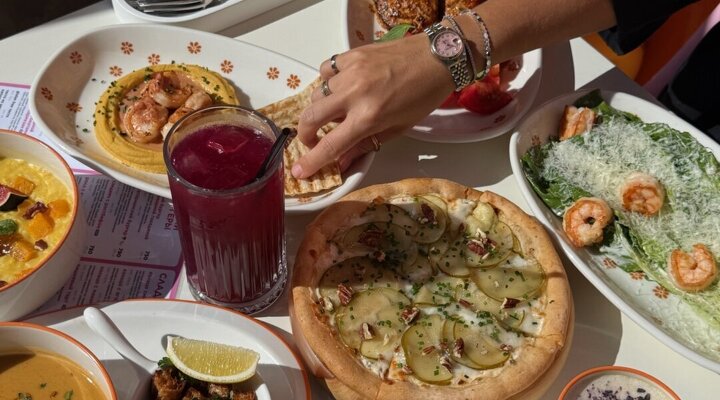 В кафе правильного питания пара новинок: чечевичный суп, биточки из индейки с овощами и пюре, тыквенный хумус с креветками, эклер с инжиром и сет горячих напитков.