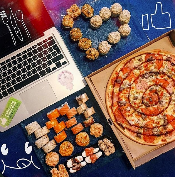 Внушительное меню, начиная от пиццы и роллов и заканчивая осетинскими пирогами, завтраками и ВОК-лапшой. Для заказывающих еду после 22:00 предусмотрены специальные бонусы. Есть после шести уже не так уж и вредно, правда?