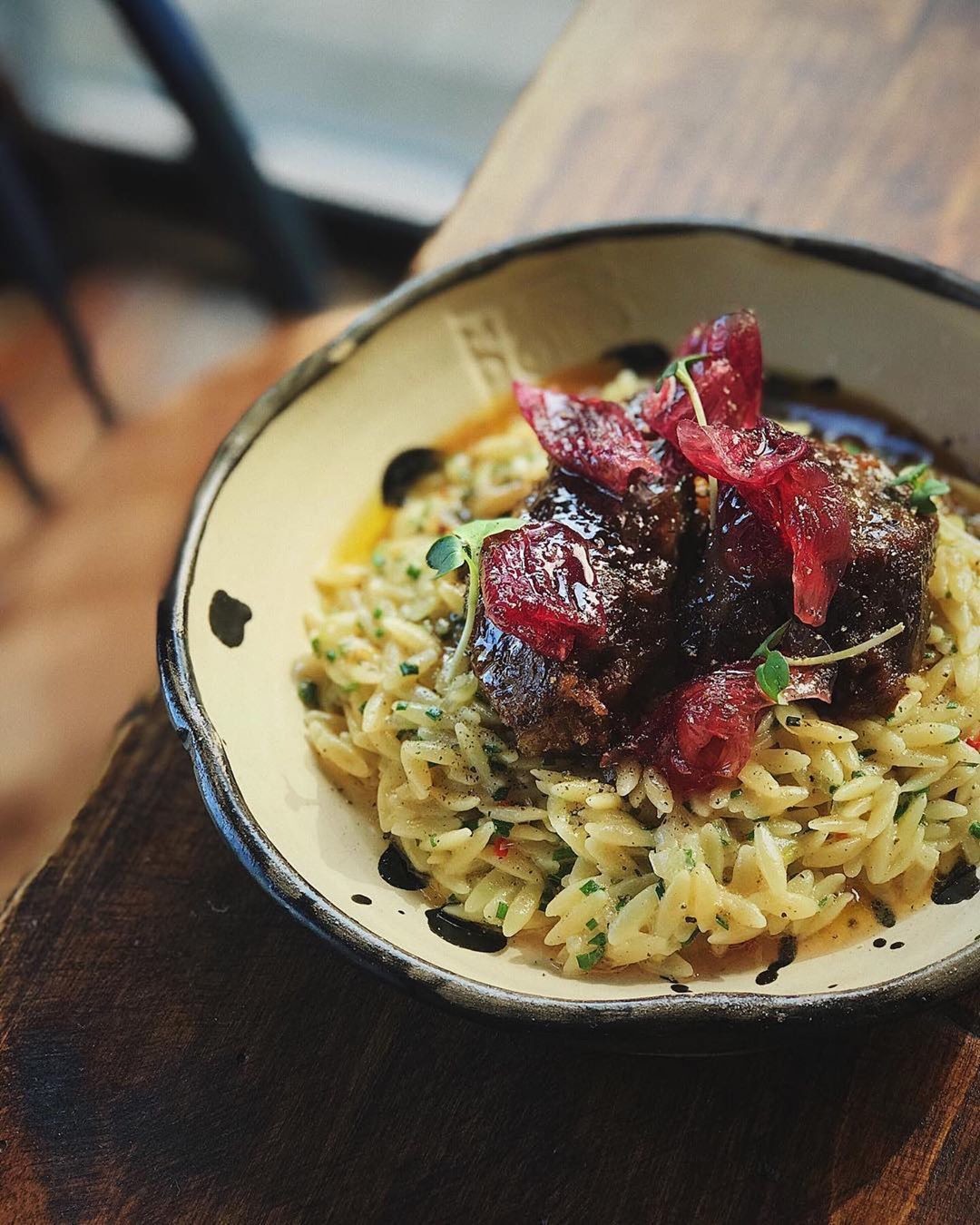 А вот и настоящие изыски! Итальянская кухня в ресторане представлена блюдами от салатов и супов до равиоли, но одно из коронных блюд заведения – орзо с щеками барана. Орзо – необычная мелкая паста, напоминающая перловую крупу. А щеки барана – нежная мякоть, которая легко усваивается и богата белком, витаминами и микроэлементами.