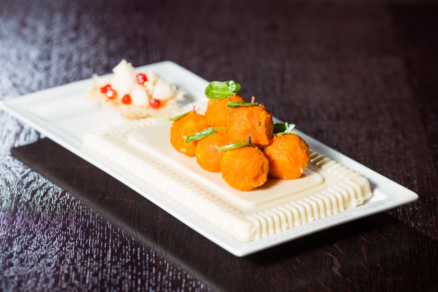 Из творожной массы сформировать небольшие шарики массой 20-25 грамм и обвалять их в натертой моркови.