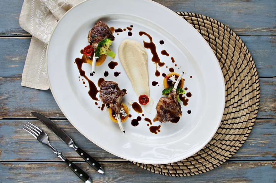 Каре ягненка с тыквенными медальонами с сыром Belster и Belfor.