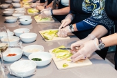 В этот раз участники мастер-класса под руководством шеф-повара Тимофея Егорова (The Garden Grille&Bar) готовили морские гребешки Сен-Жак с цуккини, вялеными томатами и соусом из маракуйи. Гостей ждали подарки от партнеров мероприятия: отеля Hilton Garden Inn Ufa Riverside, it'sDEREVO, INBOO, "Живые чипсы".