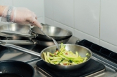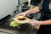 Блюдо: Цуккини и вяленые томаты нарезать соломкой, обжарить на растительном или оливковом масле вместе со шпинатом, далее добавить соль и перец. Морские гребешки обжариваем с добавлением чесночного масла.
