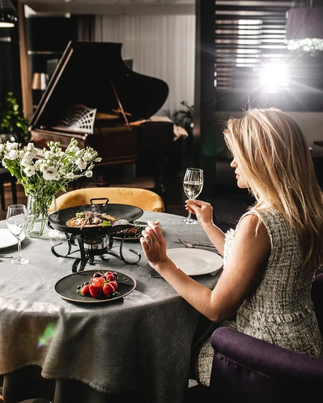 В ресторане предлагают готовый сценарий для субботнего вечера: изысканные блюда и живую музыку. Под сопровождение саксофона и пианино гости попробуют блюда из сезонных продуктов: капусту с крабом и водорослями, фуа-гра с ранетками и антоновским яблоком, пареную репу с гусем и корнеплодами, карамель с опятами и черным трюфелем, фермерскую перепелку с желудями и грибами, а на десерт – панна-котту из земляной груши с карамелью и мороженым из сена. Начало запланировано на субботу в 19.30. Стоимость – 3000 рублей. Забронировать столик можно по телефону: +7-987-100-00-01.