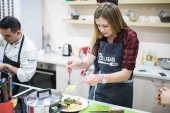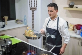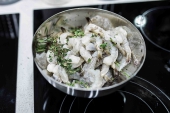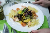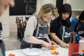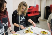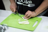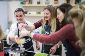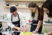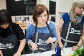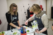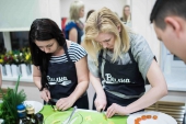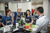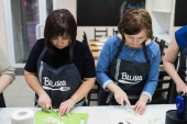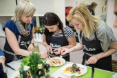 В честь 8 марта редакция журнала "Уфа.Собака.ru" пригласила партнеров на мастер-класс в кулинарную студию "Вилка". Повар с богатым опытом Рамиль Фархуллин провел урок французской кухни, на котором поделился секретами приготовления куриного фрикасе, салата с фенхелем и креветками, а также супа вишисуаз.