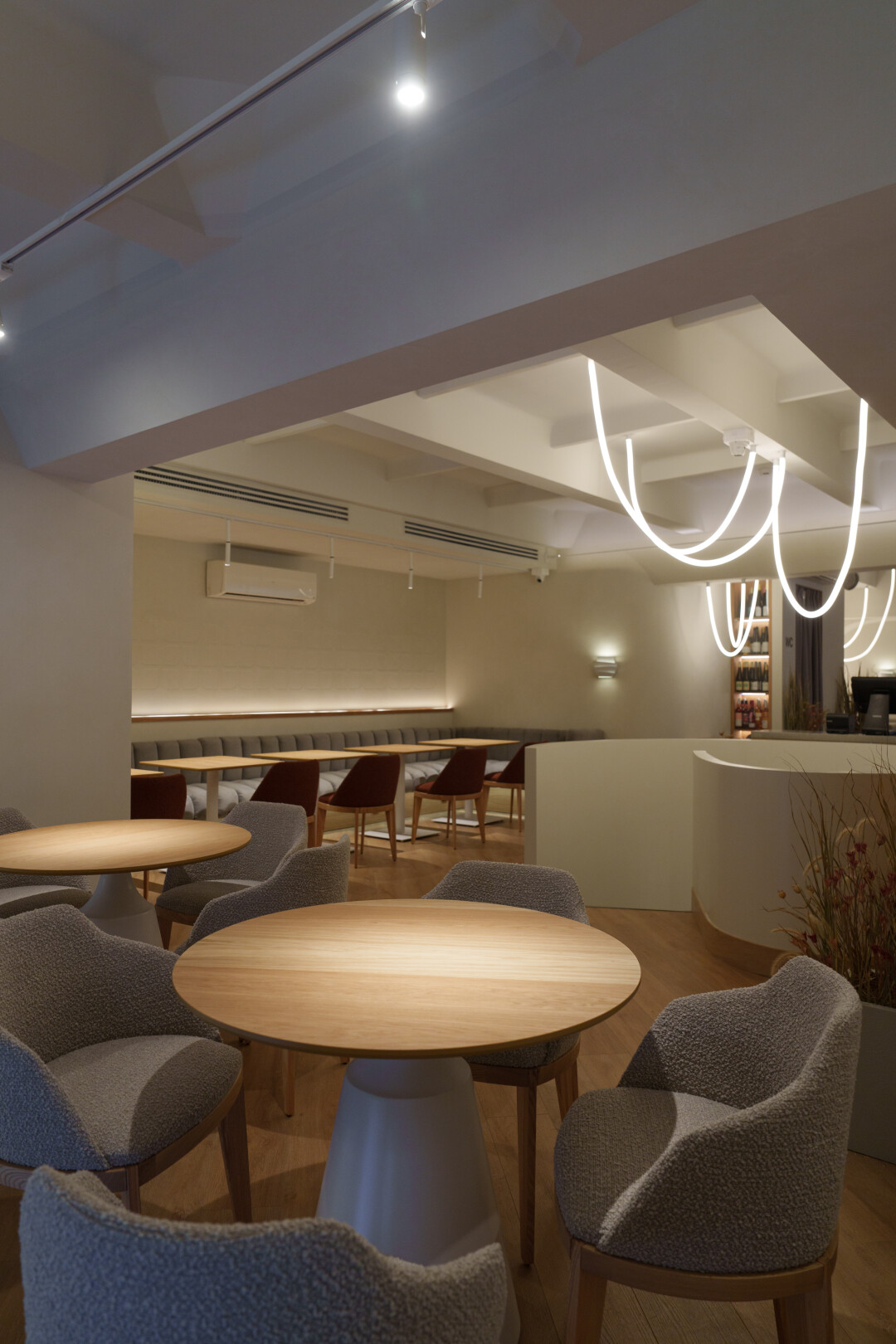 Каждый день с 10 утра действует меню завтраков: можно взять французский омлет с трюфельным маслом, шакшуку или бриошь со скрэмблом, мортаделлой и фисташкой. А к ужину стоит заказать коктейли от шеф-бармена Лианы Нуриевой. В карте бара найдете, например, коктейль с электрическим цветком, а еще много напитков по бокалам.